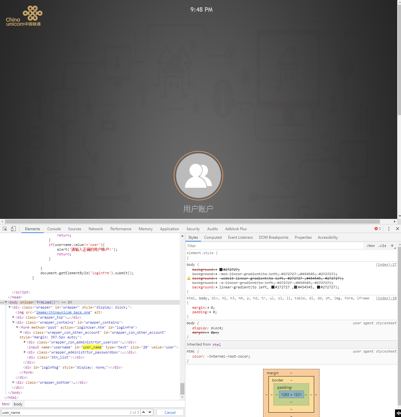- F12进入开发者工具,在Elements中搜索user_name找到这里