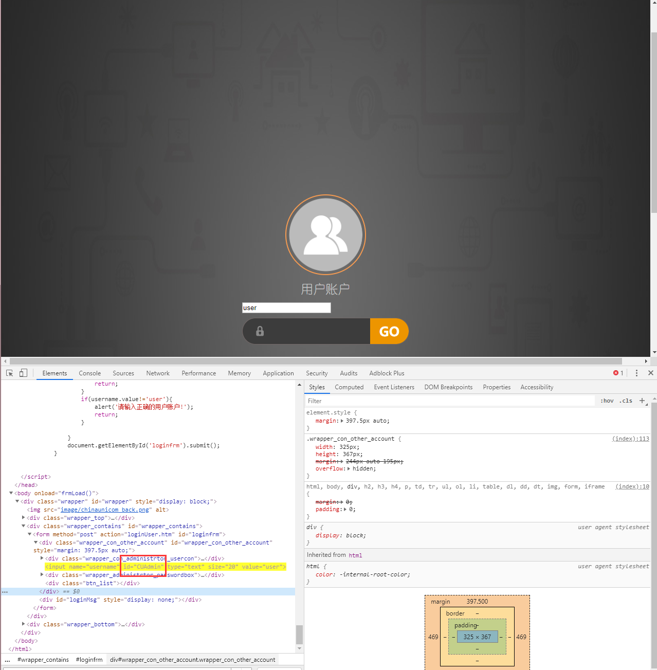 - 将元素id改为CUAdmin,此时界面上出现用户名输入框,如图